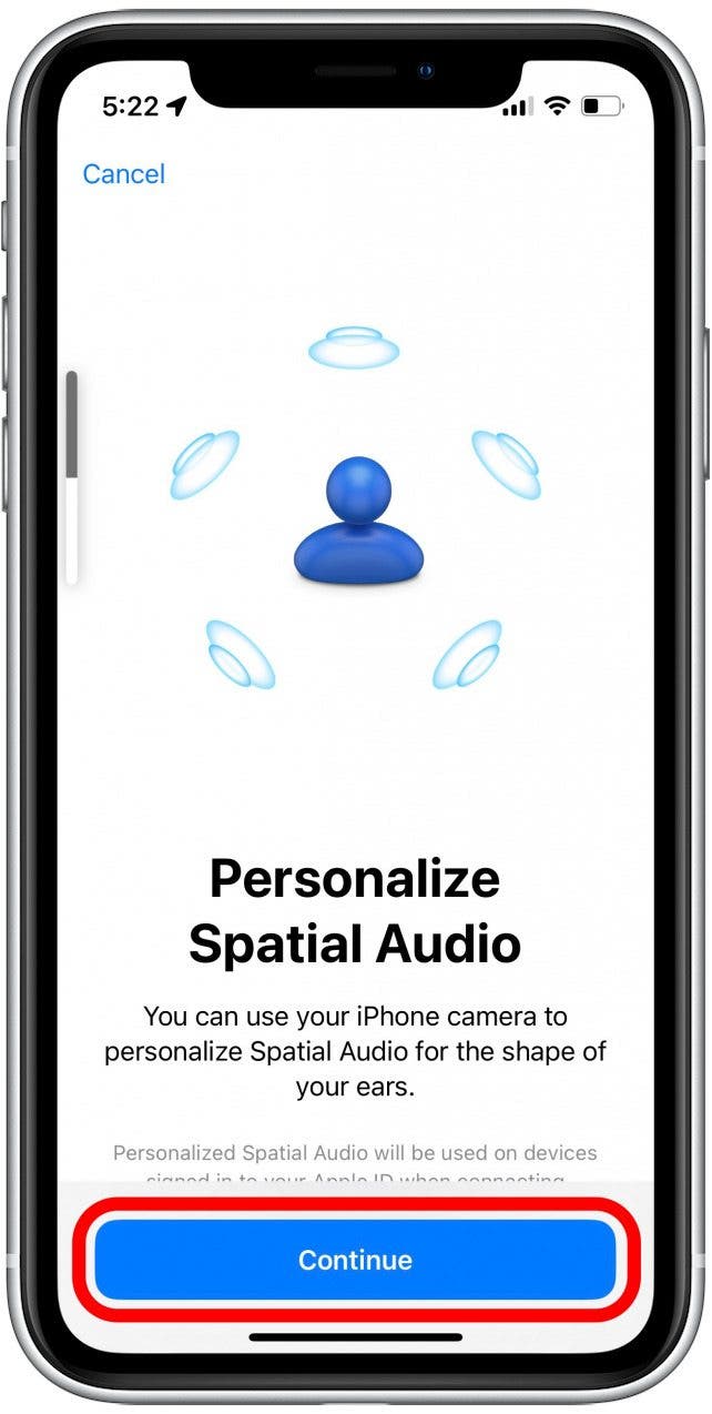 - 轻敲继续,然后按照屏幕提示完成个性化空间音频设置。