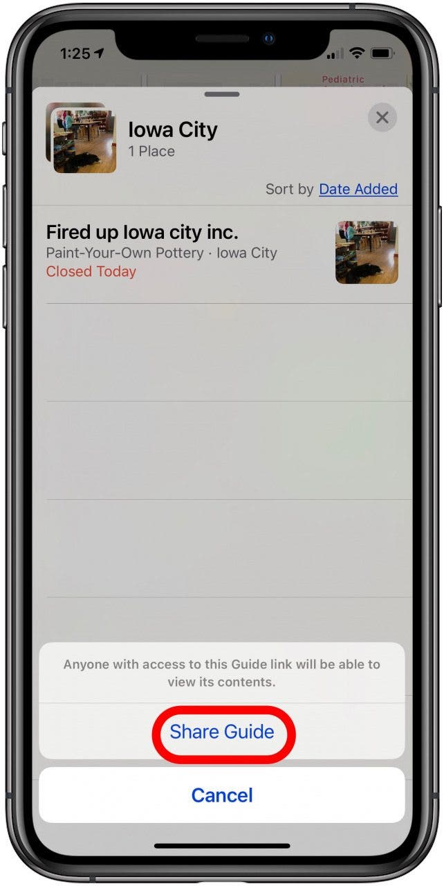 - 向上滑动,直到看到我的指南部分;点击您想要共享的指南。