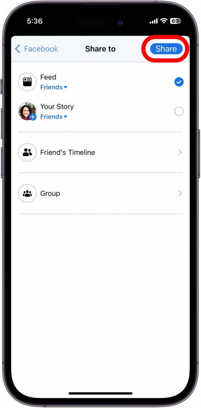 - 选择您想要在社交媒体应用上分享 Wordle 结果的位置,然后点击分享发布您的 Wordle 分数。