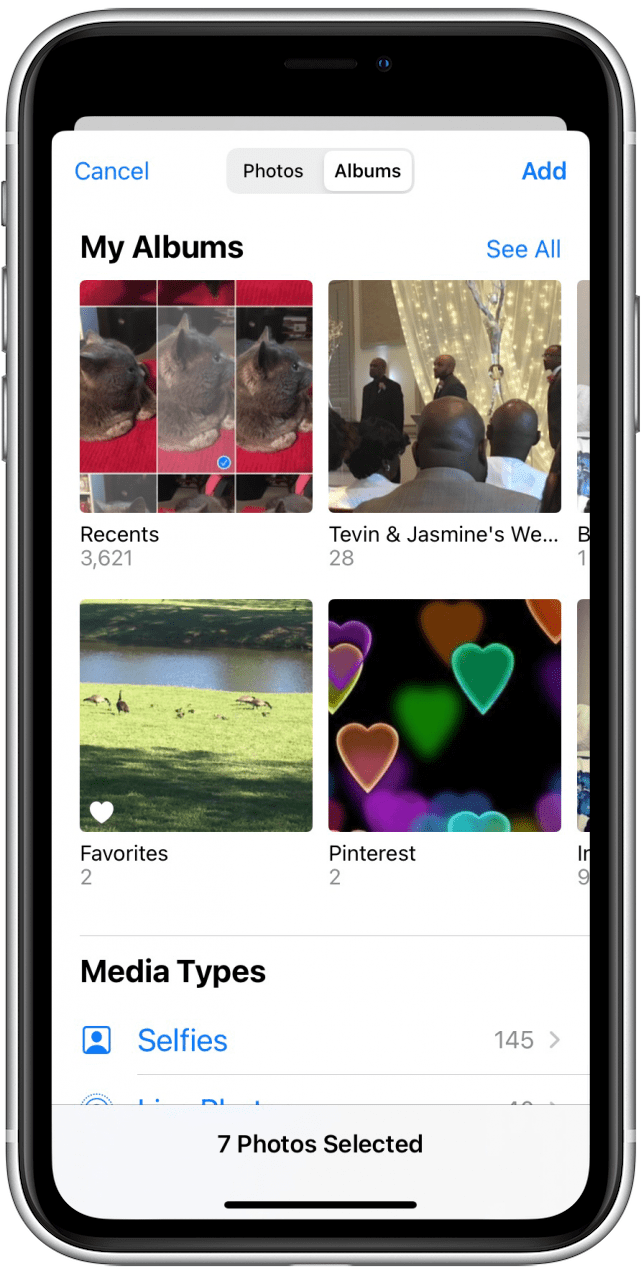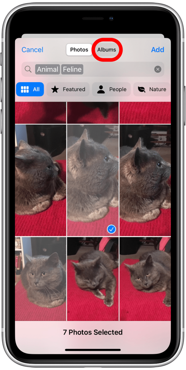 - 在这里您可以按相册浏览照片或浏览来自共享相册如果你有的话。