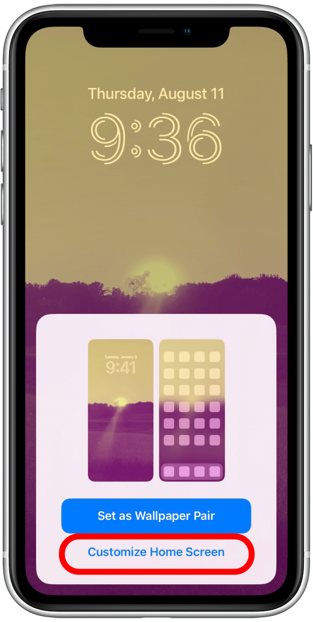 - 你会看到设置为壁纸对和自定义主屏幕按钮。