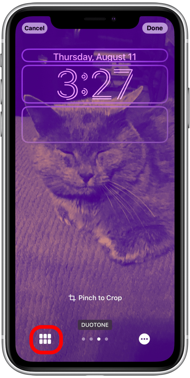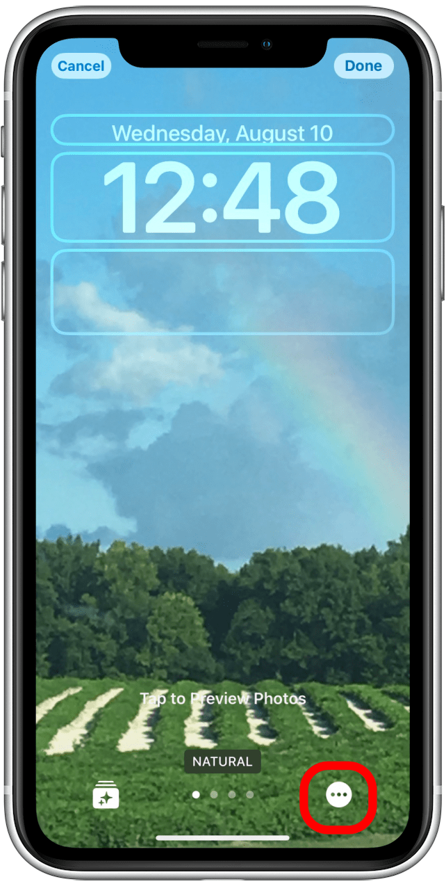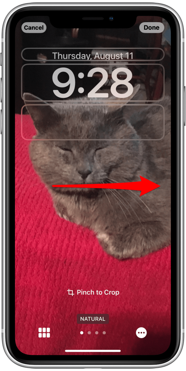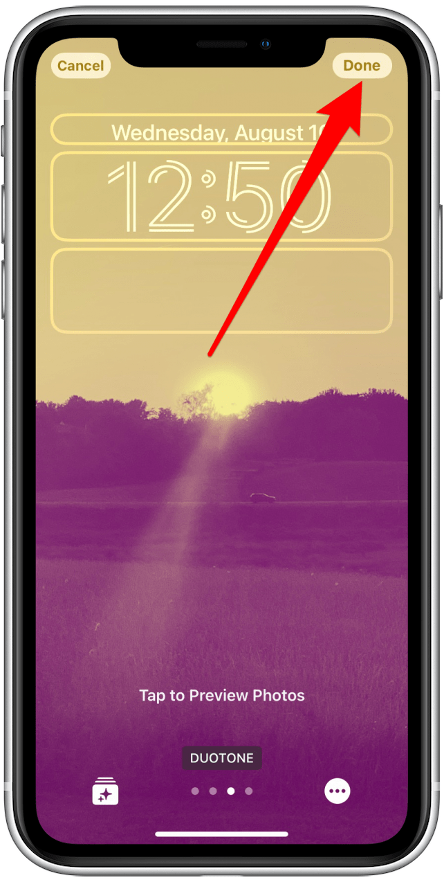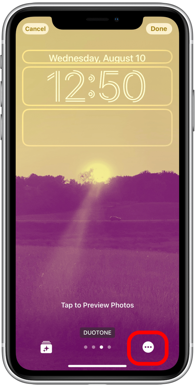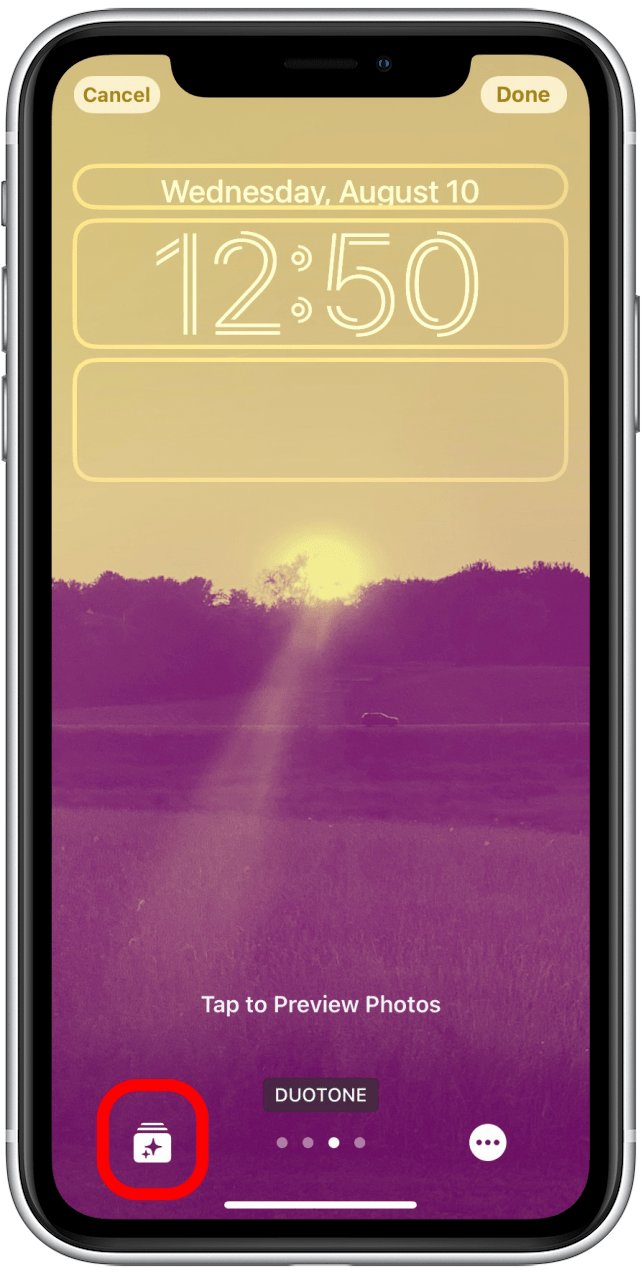 - 接下来,您将能够通过滑动更改照片风格来进一步自定义锁定屏幕。选项有自然的,黑与白,双色调, 和洗色。