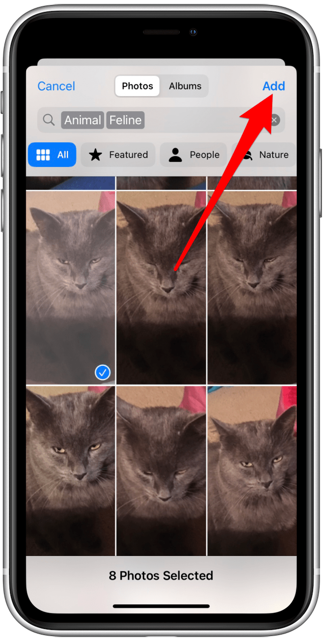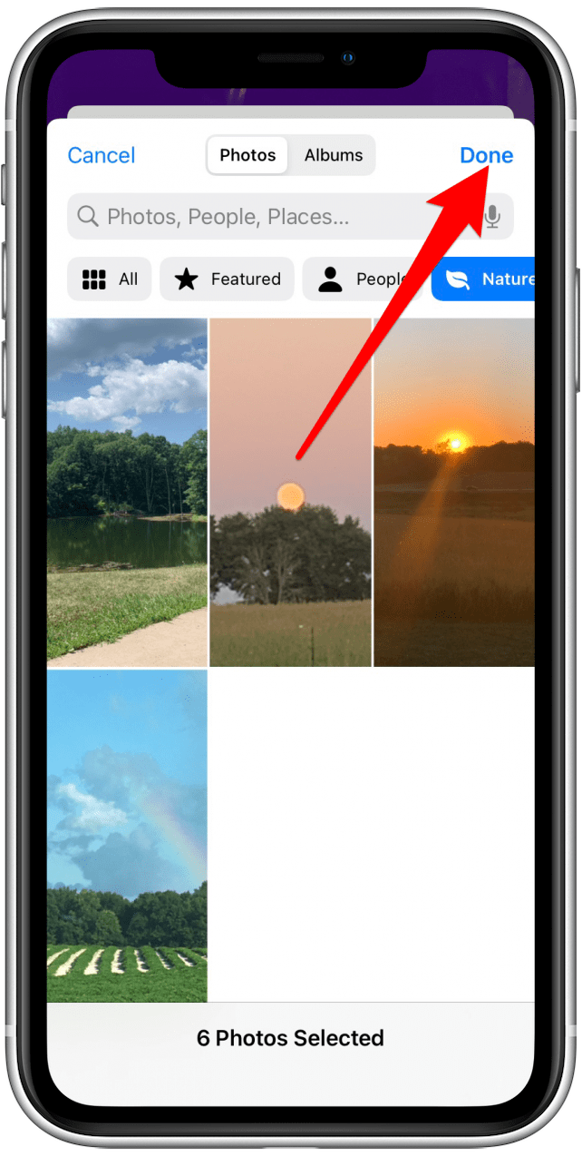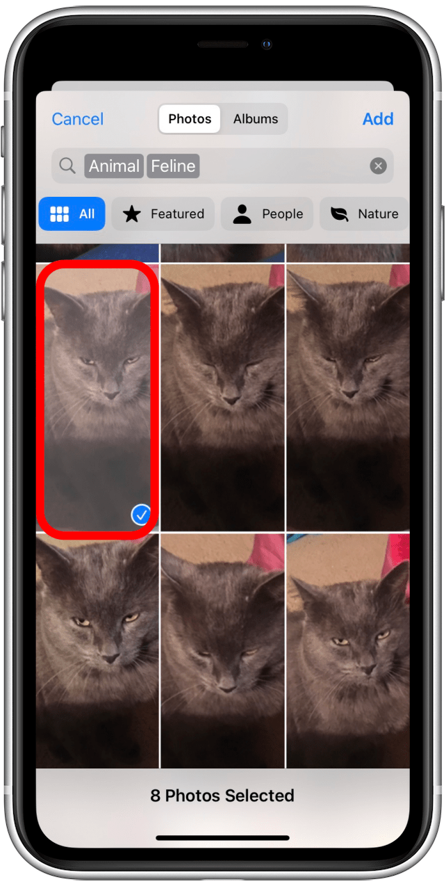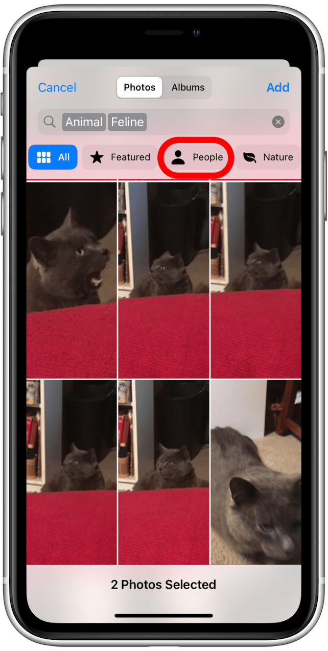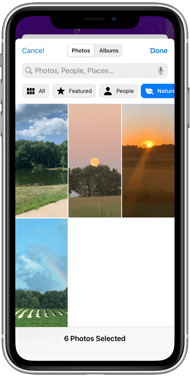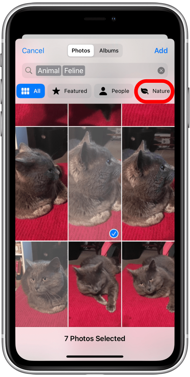 - 如果您点击人们,宠物,自然, 或者城市要取消选择或选择它们,顶部的预览照片将会发生变化。