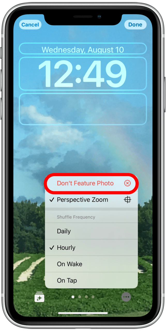 - 如果您发现不想在锁定屏幕上看到照片,请点击三个点并选择不要展示照片。