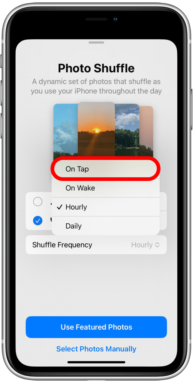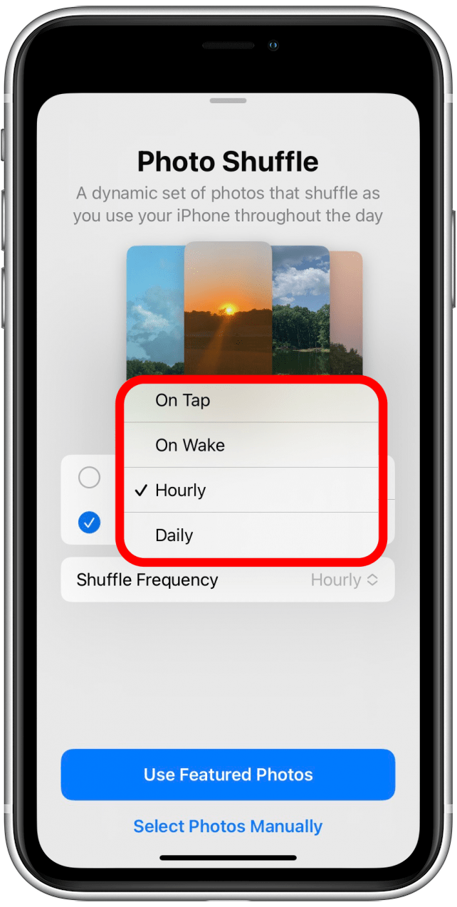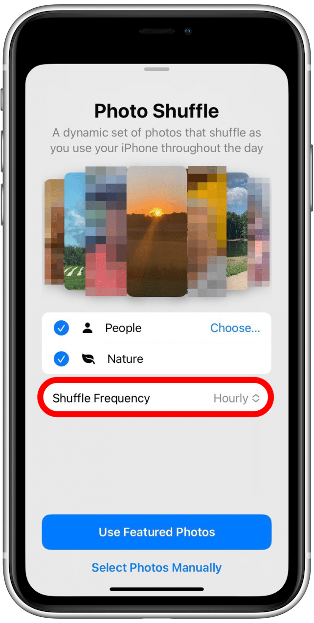 - 在 锁每次唤醒 iPhone 时都会更改照片,这是我最喜欢的选项。每小时更改照片。每日更换照片。