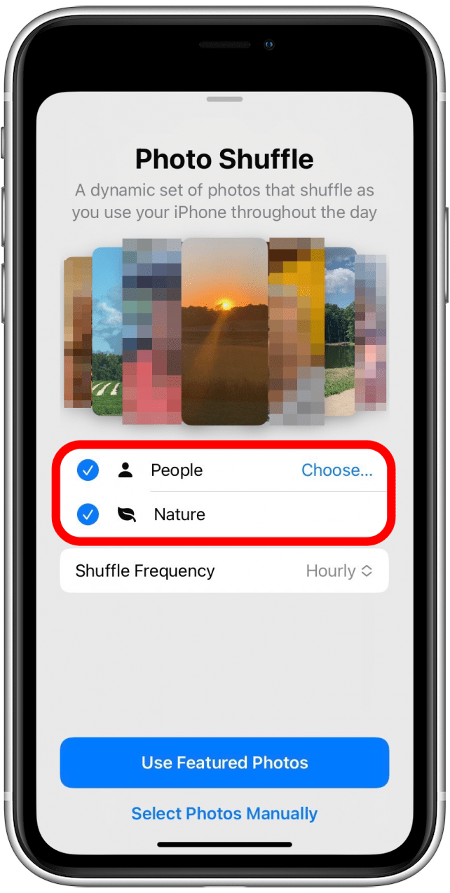 - 在这里您可以再次取消选择或选择人们,宠物,自然, 和城市。您还可以选择您想在锁定屏幕上看到哪些人的照片。