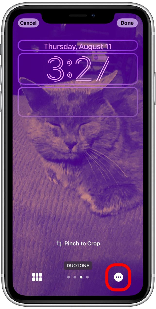 - 如果您的照片采用双色调或彩色清洗风格,请点击三个点。