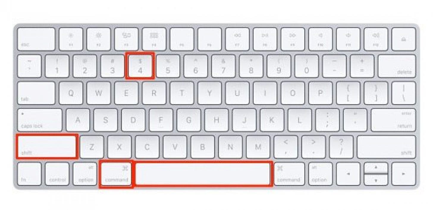 同时按住 Command + Shift + 4 键。