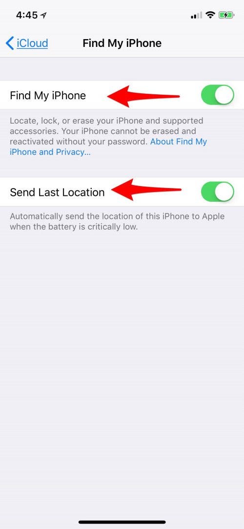 - 关闭“查找我的 iPhone”并输入您的 Apple ID 密码。发送最后位置将自动关闭。