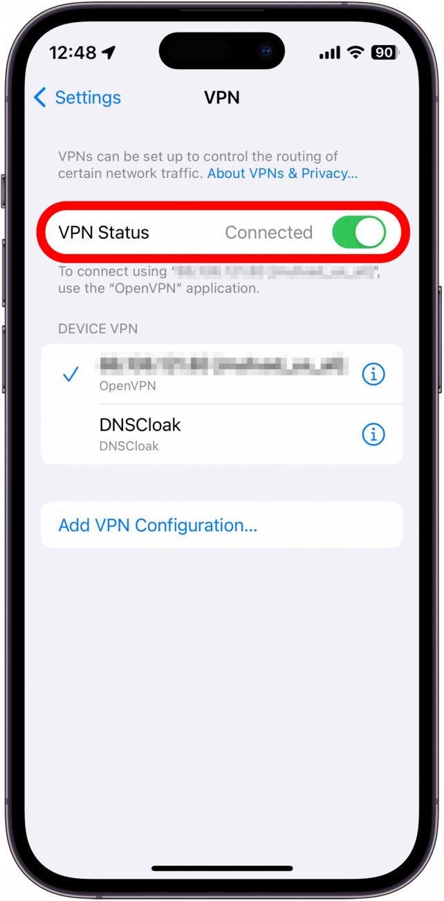 - 如果您的 VPN 已启用,您可以点击开关将其禁用。只需点击开关即可将其重新打开。