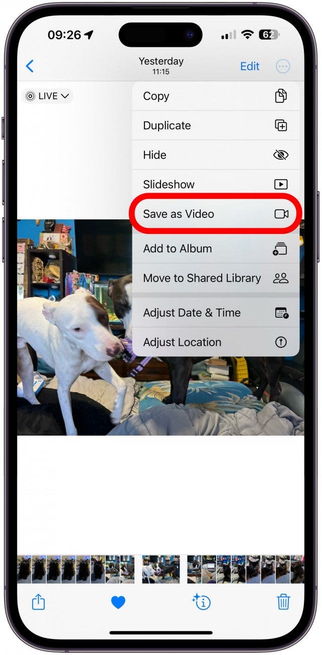 如果您点击“共享”图标,然后选择 Facebook 等第三方应用程序,您将能够将动画作为视频共享。您必须直接从照片应用程序共享动画。如果您打开 Facebook 并尝试直接上传动画,任何实时照片、循环或跳动都将作为静态图像上传。不要忘记免费注册我们有关更多 iPhone 使用技巧的时事通讯。