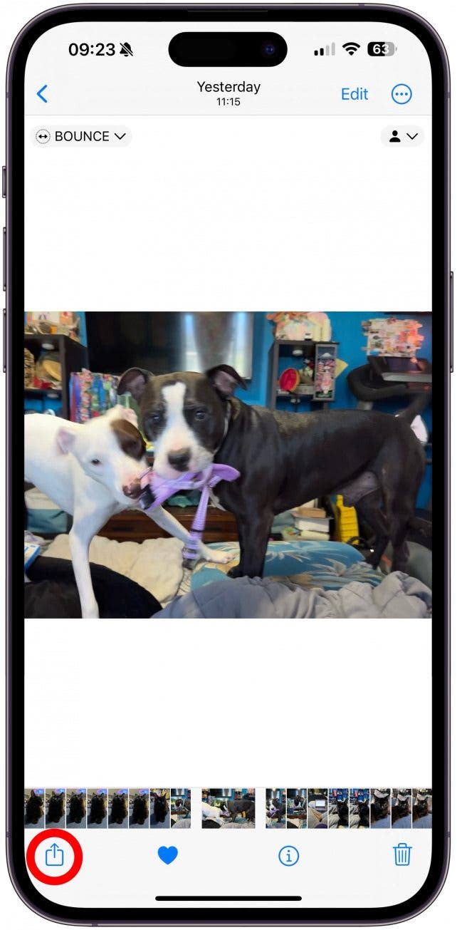 动画与视频略有不同,因为它们以 HEIF 格式保存,但并不普遍支持。不幸的是,您无法在某些应用程序(包括 Instagram)中将这些内容发布为动画。不过,您可以让您的实时照片产生很酷的效果,例如 Bounce,它模仿 Instagram 的 Boomerang 效果,这是常规 GIF 无法实现的。