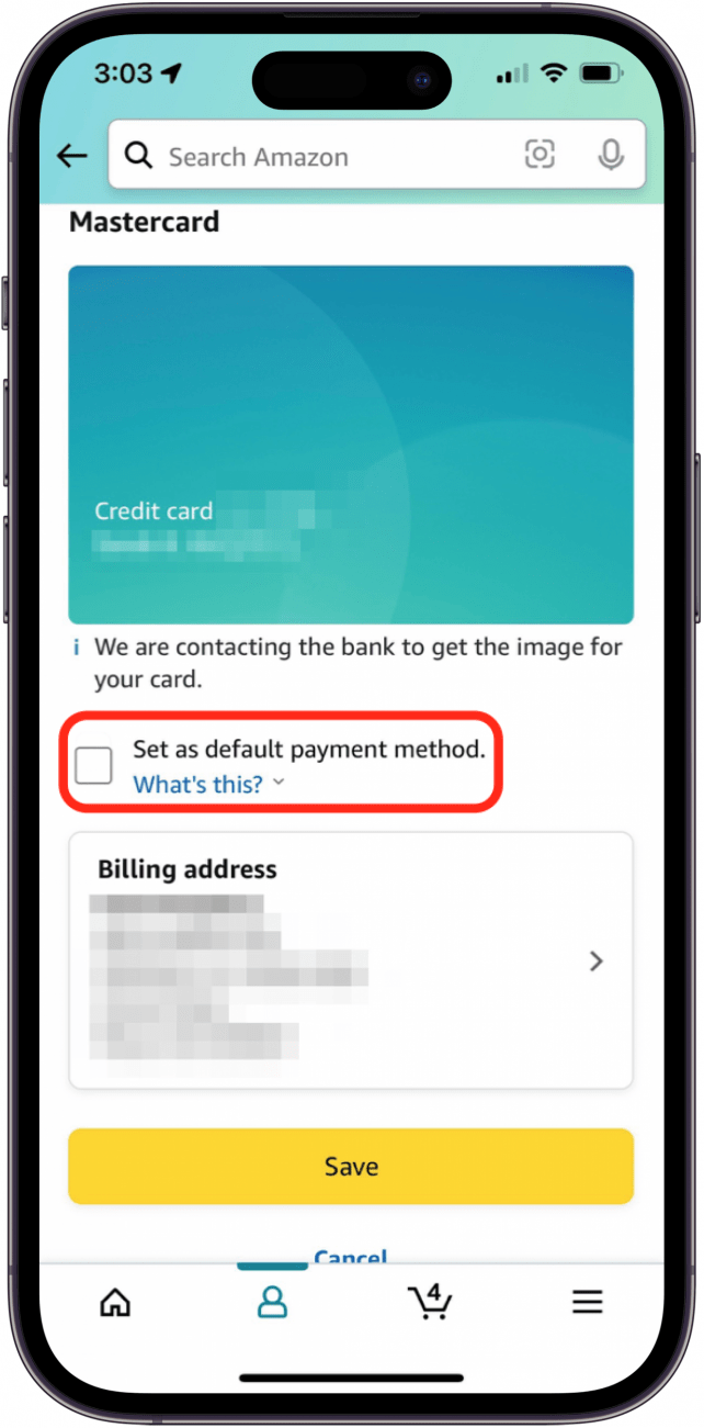 - 轻敲节省。您将看到一条消息,表明付款方式已成功添加。