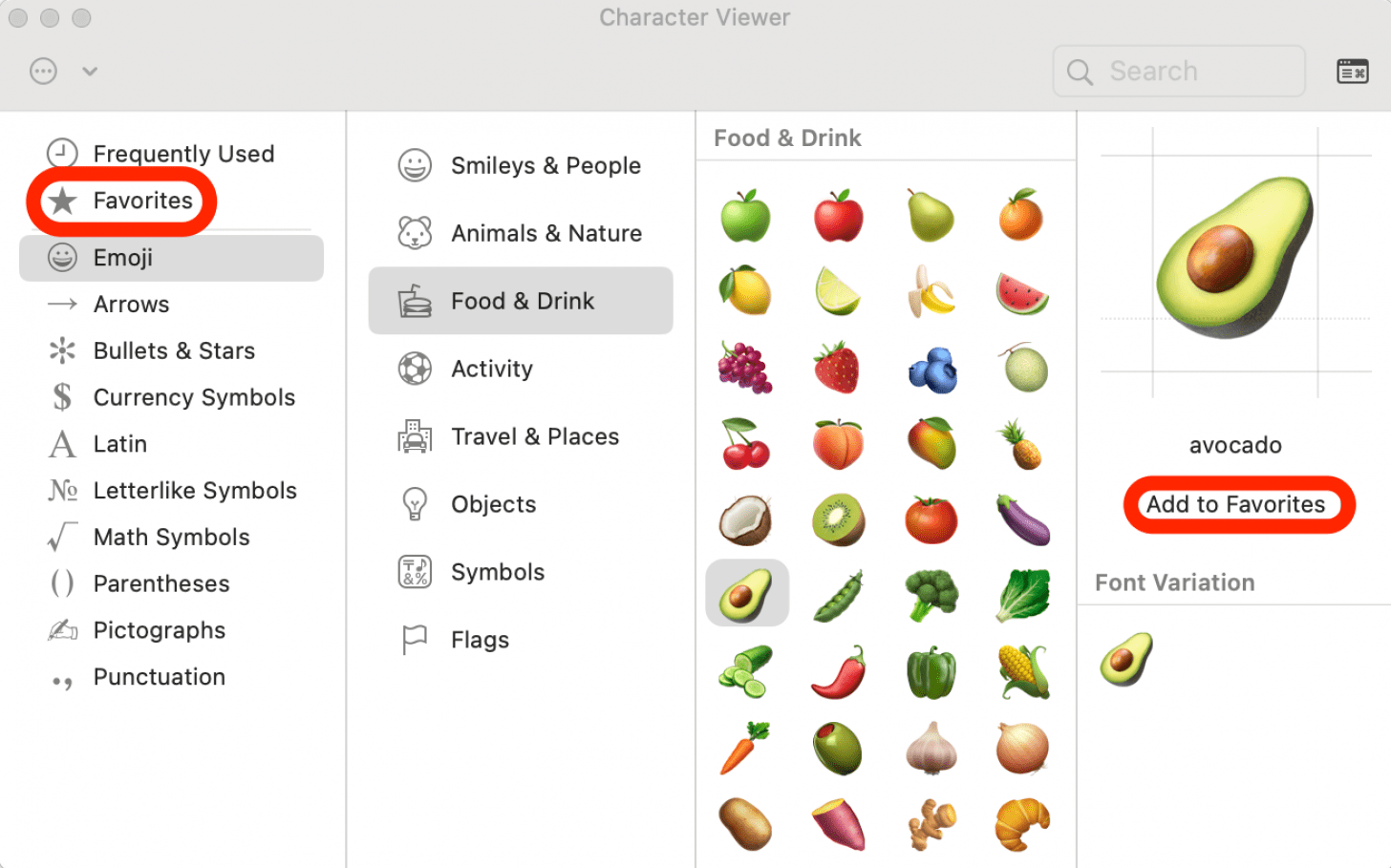 - 为了下次更方便地找到所选的表情符号,您还可以单击添加到收藏夹。这会将表情符号添加到收藏夹类别在表情符号菜单的左侧。