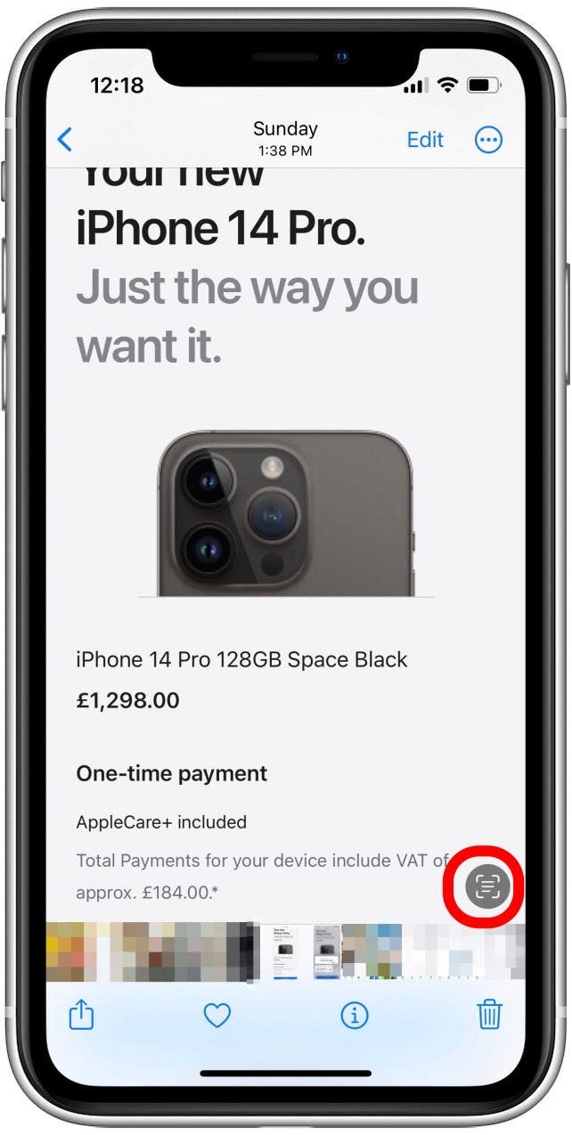 或者,如果“照片”应用程序没有自动检测文本,请点击实时文本图标在照片的右下角。