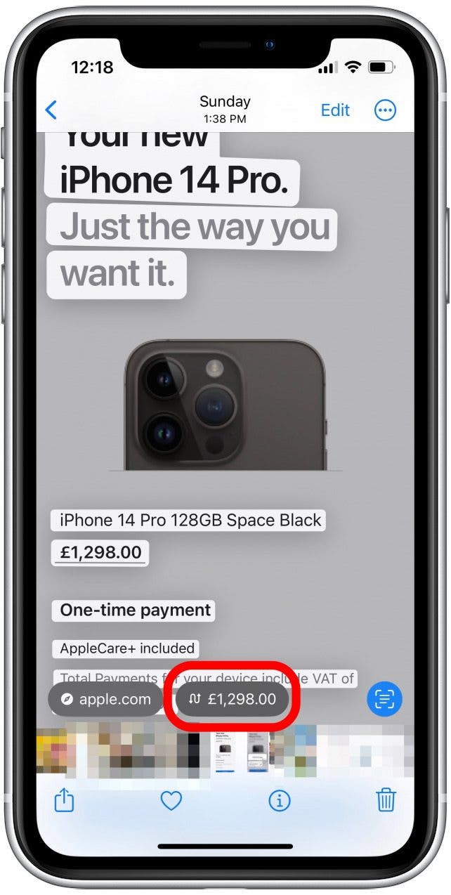 - 使用照片应用程序中的实时文本功能转换图像中列出的货币金额。