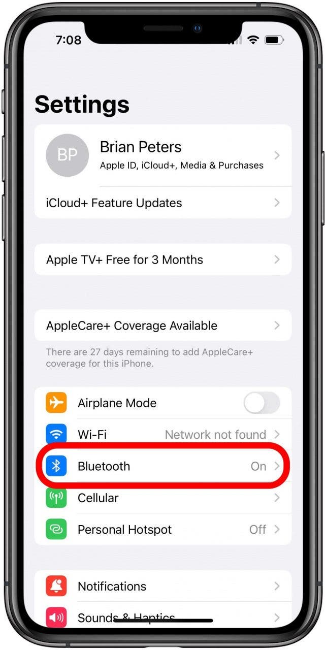 - 点击蓝牙选项。