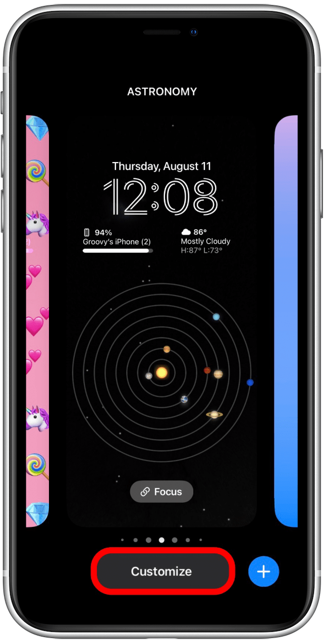 - 选择您想要添加小部件的锁定屏幕,然后点击定制。