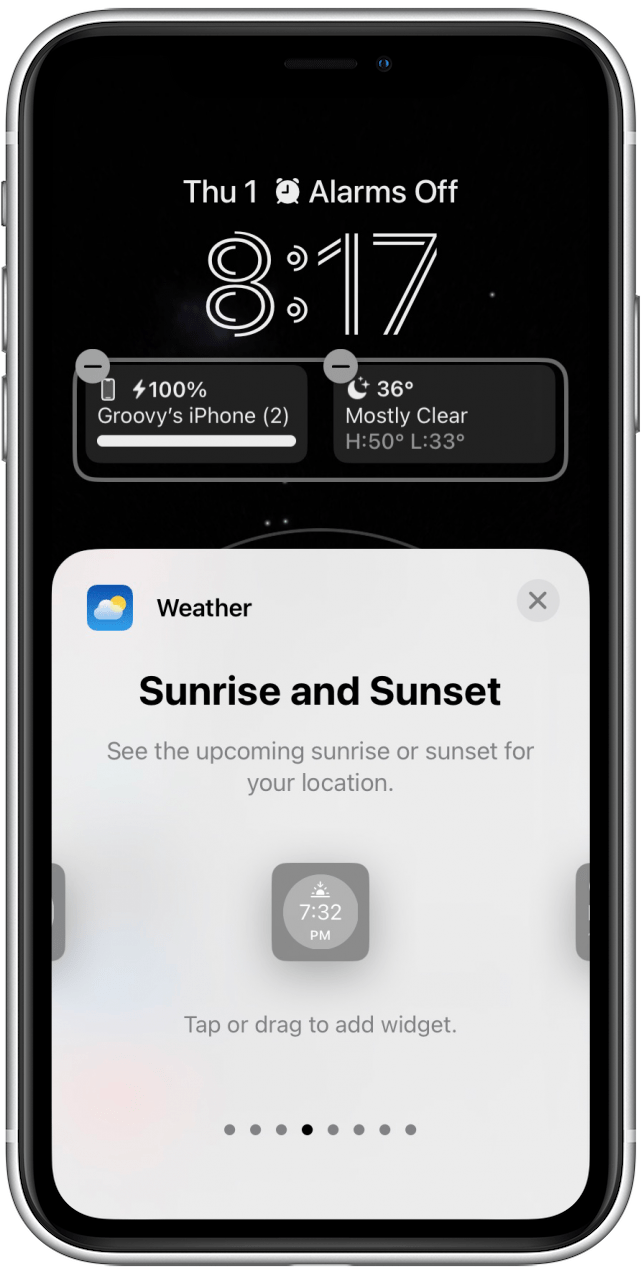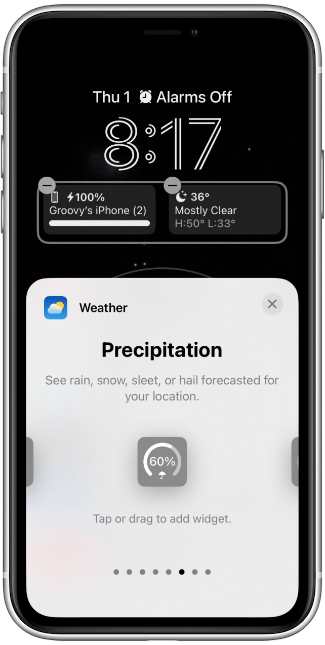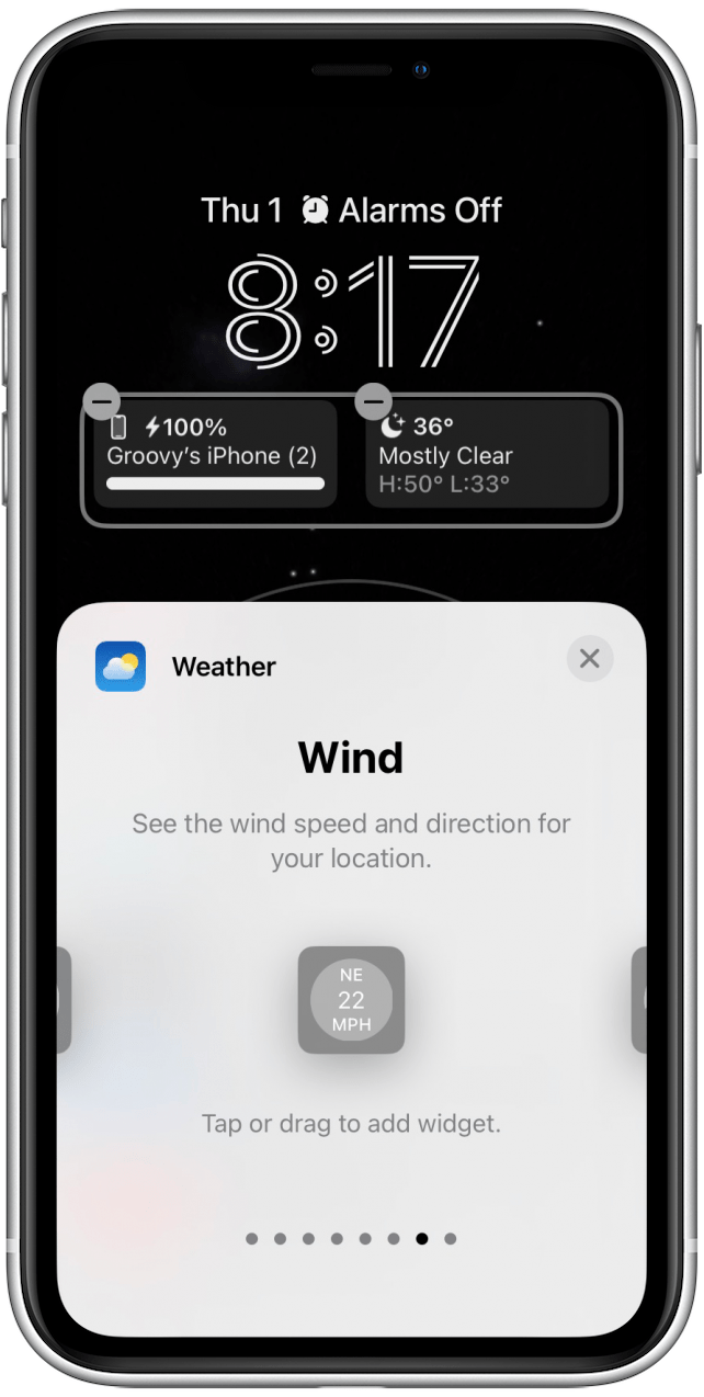 - 点击或拖动您想要将其添加到锁定屏幕的小部件。