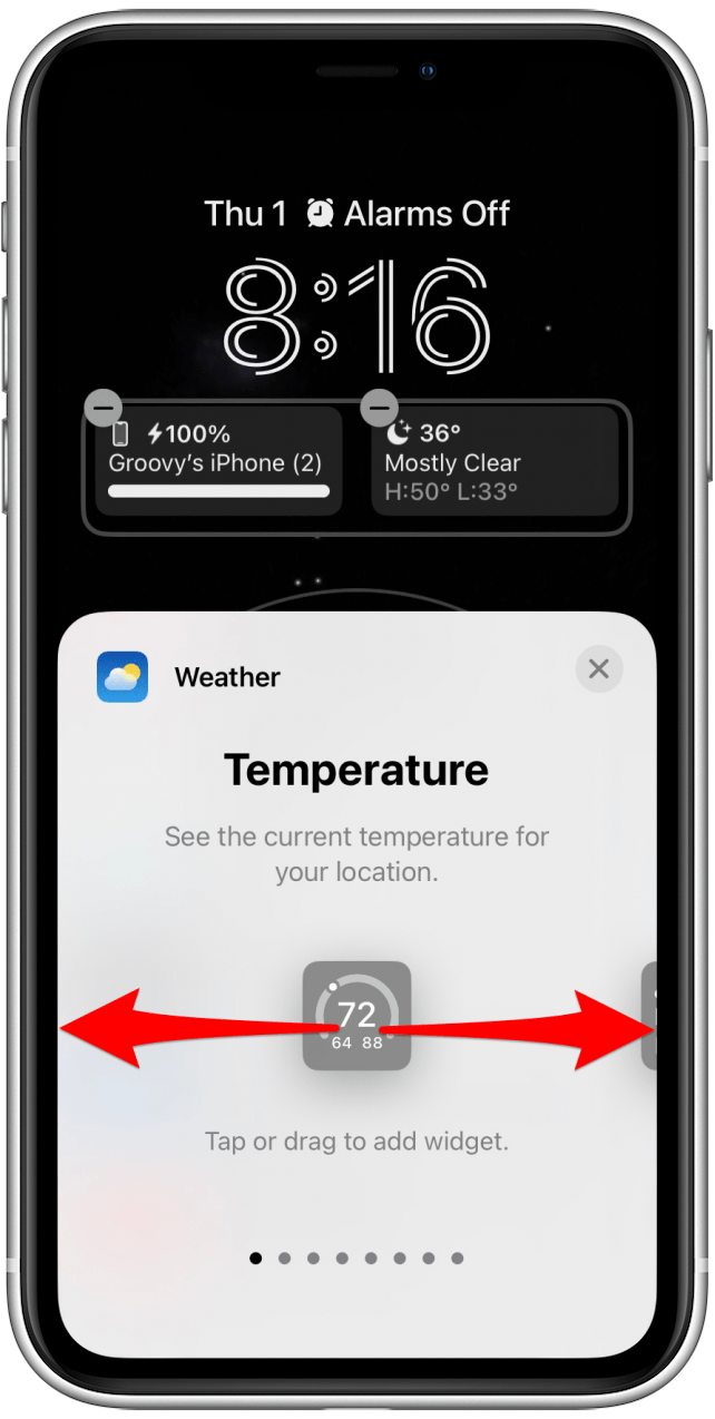 - 向左或向右滑动即可查看不同的天气小部件。