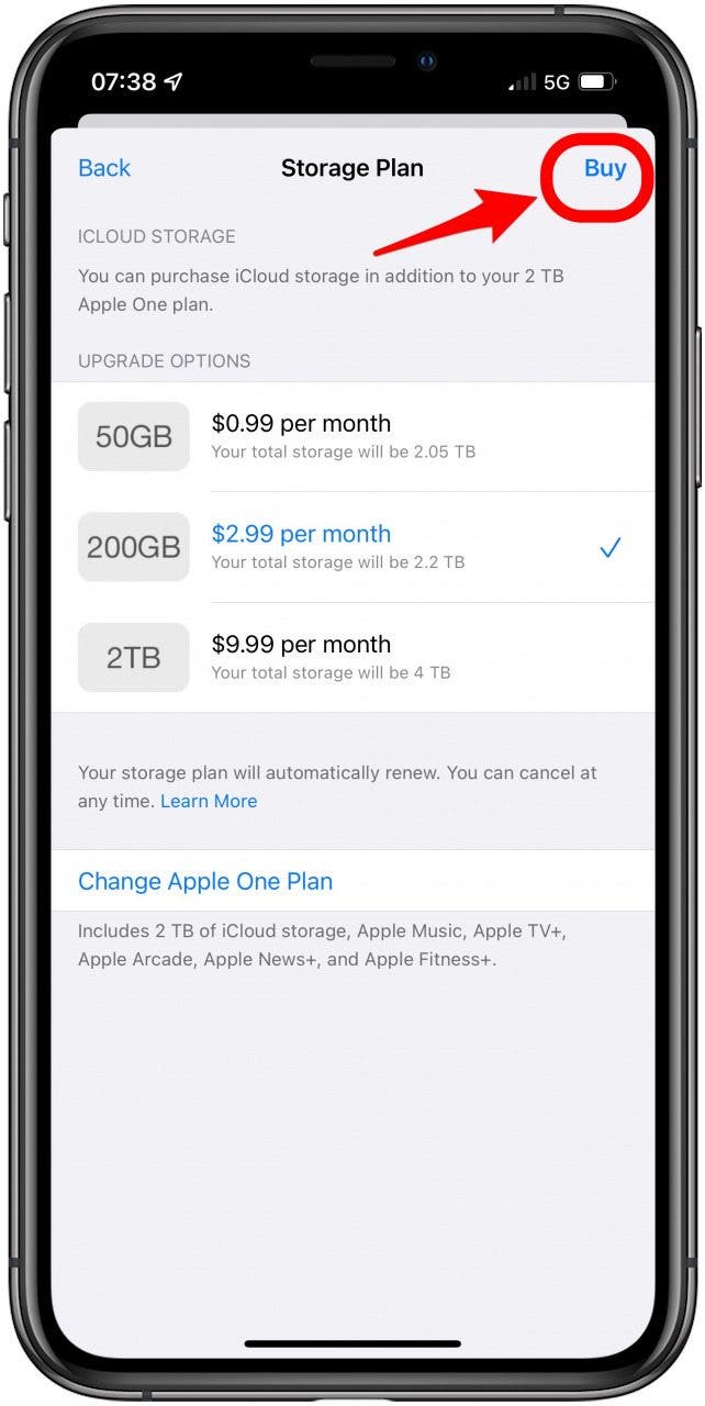 - 如果您有 Apple One,您可以通过轻按来更改 iCloud 存储空间更改 Apple One 计划。