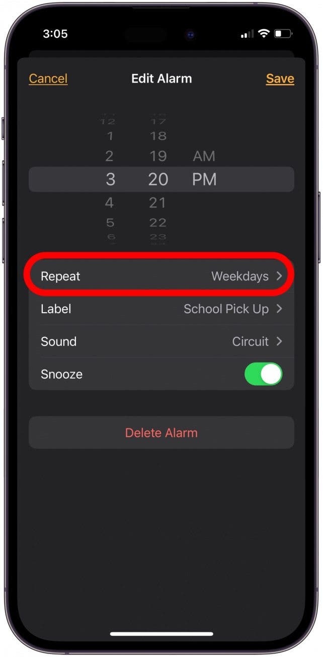 您的 iPhone 闹钟没有响可能是因为您设置错误。我知道这听起来很明显,但这是我们很多人都会犯的错误!我确信我为女儿的接学时间设置了闹钟,结果却在凌晨 3:20 被从床上惊醒,因为我错误地从下午滚动到了上午。您还可以当你在这里的时候重新制作它们,这帮助了一些人解决了无声警报问题。检查人为错误: