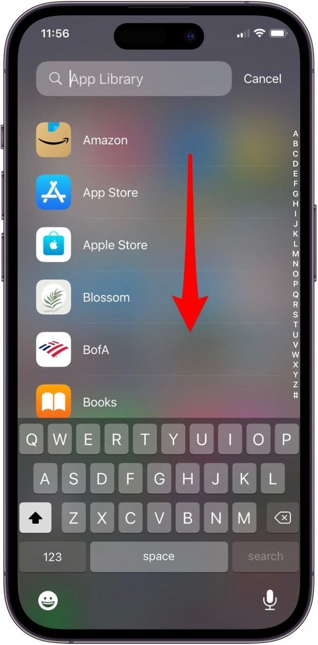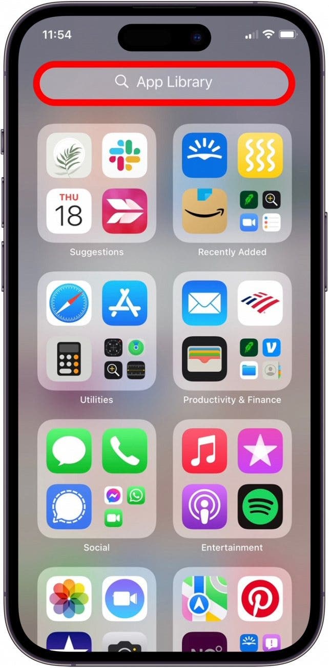 - 现在您位于应用程序库中。点击搜索栏在屏幕顶部。