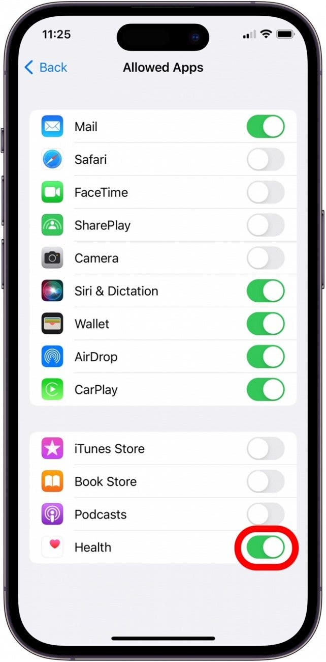- 您的健康应用程序可能已从主屏幕中意外删除或隐藏在屏幕时间设置中。