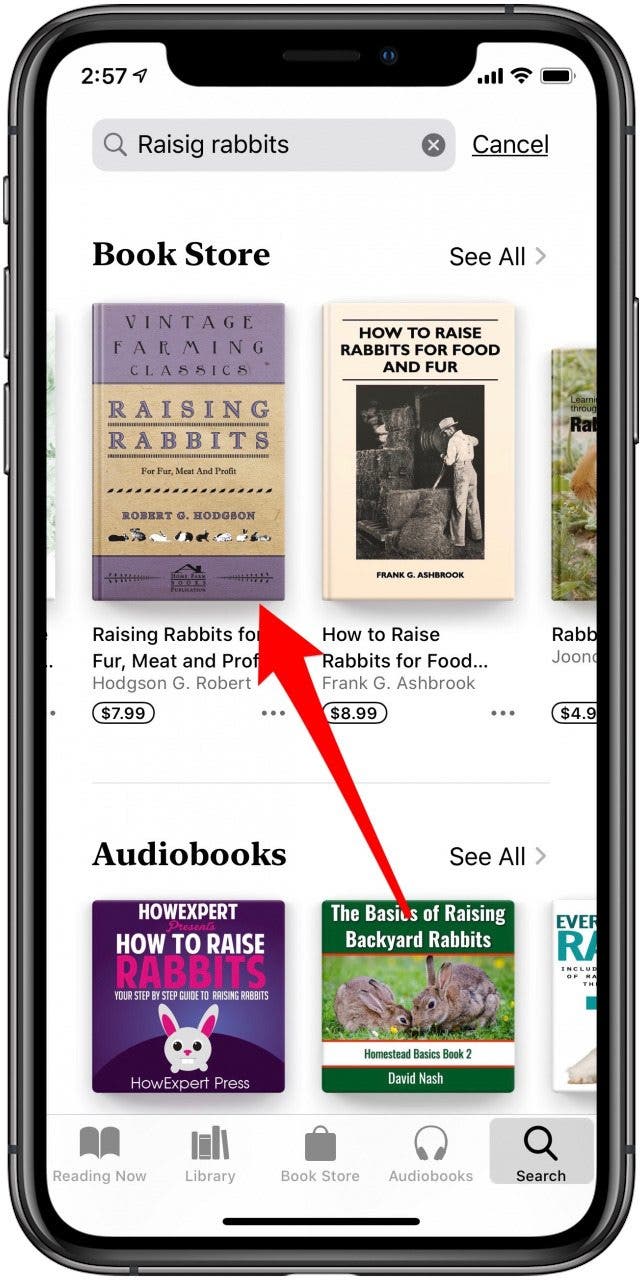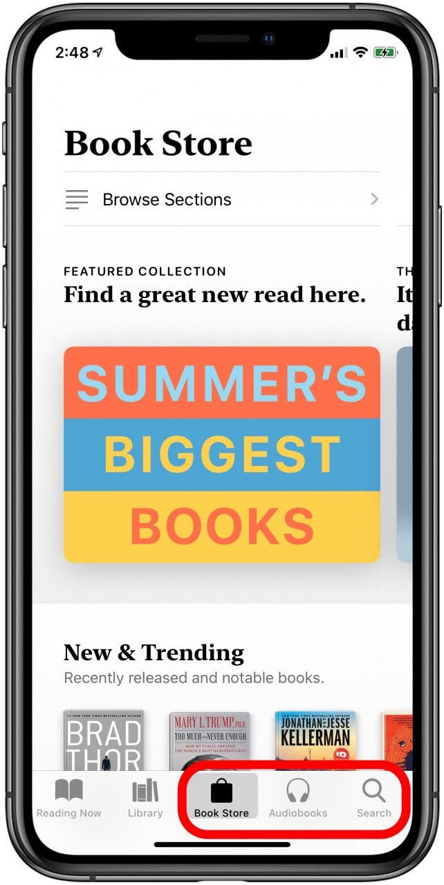 - 点击书店选项卡可浏览 Apple 或流派的建议,或者如果您有特定的电子书或有声读物,则可进行搜索。