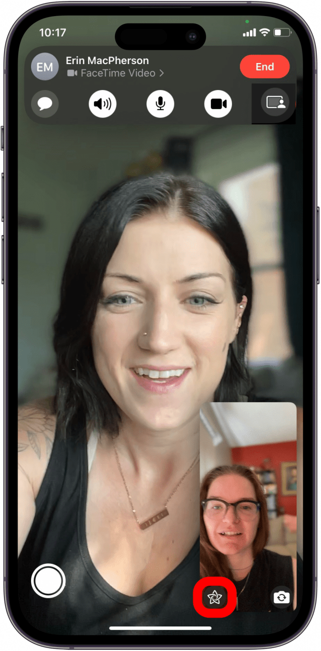 - 开始通话后,您可以向 FaceTime 通话添加过滤器。