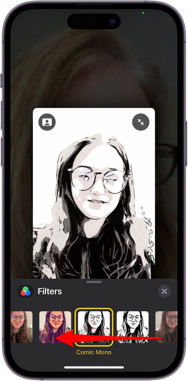 - 从这里,您可以滚动浏览各种 FaceTime 过滤器并选择您喜欢的一个!
