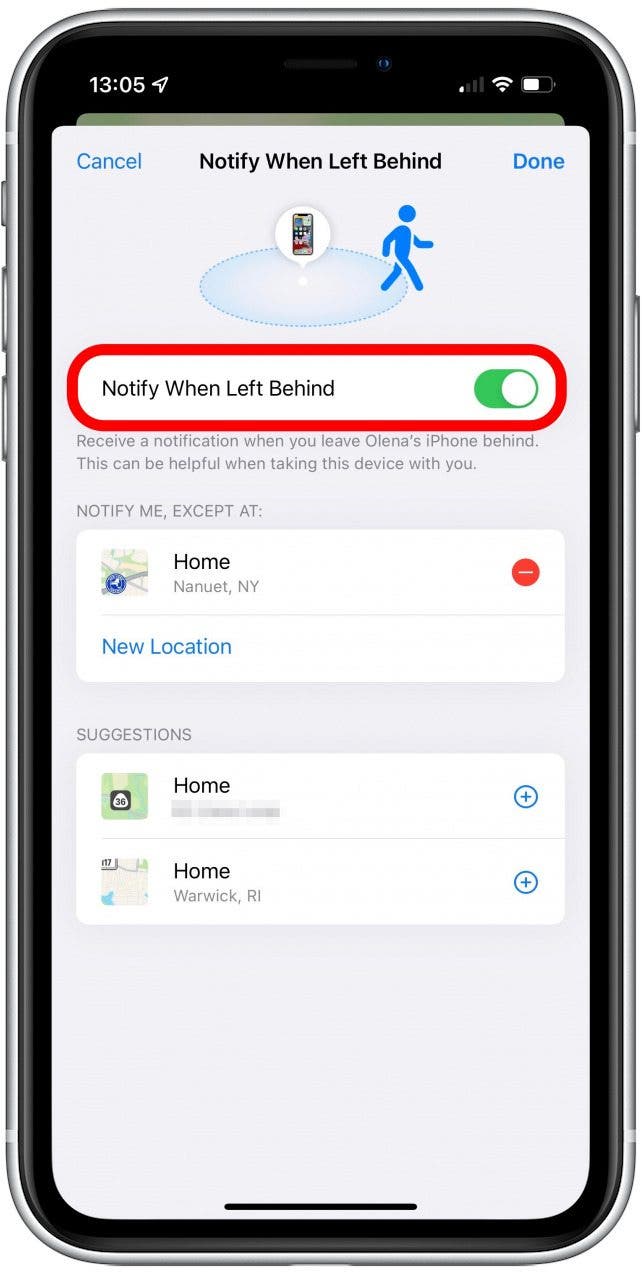 - 您还可以为您的家选择一个例外,这样如果您将设备留在家中,就不会收到通知。