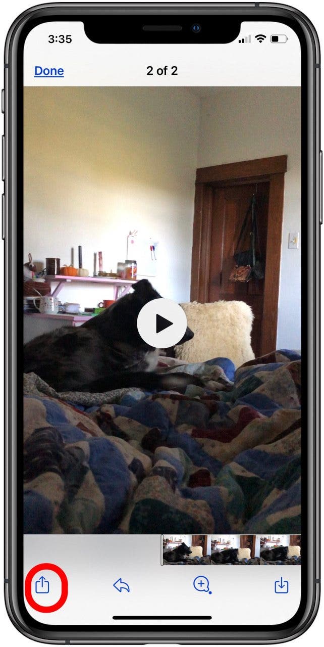 - 要保存照片,请点击分享图标在屏幕的左下角。
