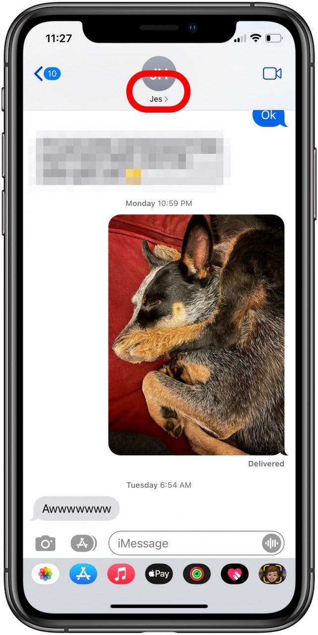 - 打开消息应用程序并点击您想要保存照片的话题。