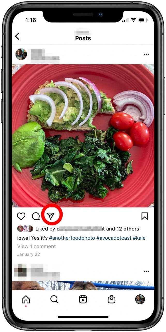 - 点按您要分享的照片,然后点按Instagram 发送图标,看起来像一架纸飞机。