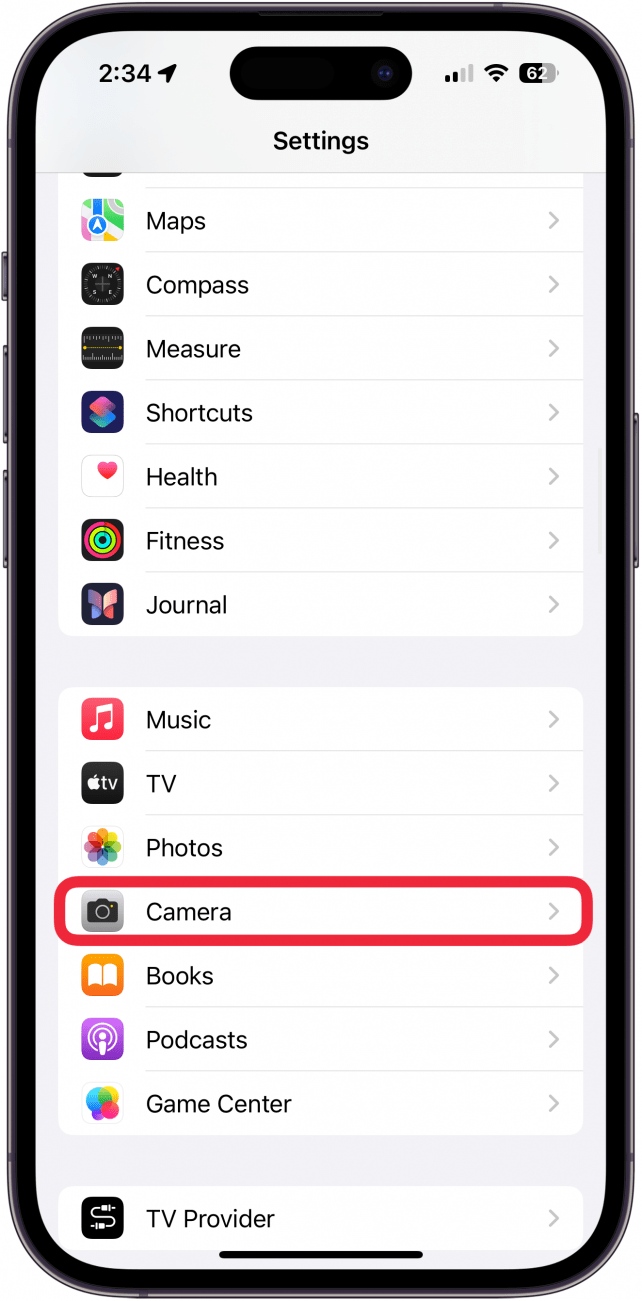 - 您可以通过点击“设置”中的“相机”并切换“扫描二维码”来解决此问题。