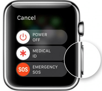 - 按住侧面按钮直到您看到“电源关闭”、“医疗 ID”和紧急求救。