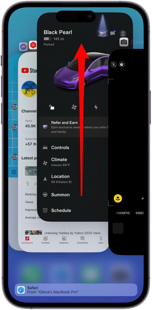 - 关闭并重新打开 Tesla 应用程序,方法是在屏幕上向上滑动以访问,然后在应用程序上向上滑动。