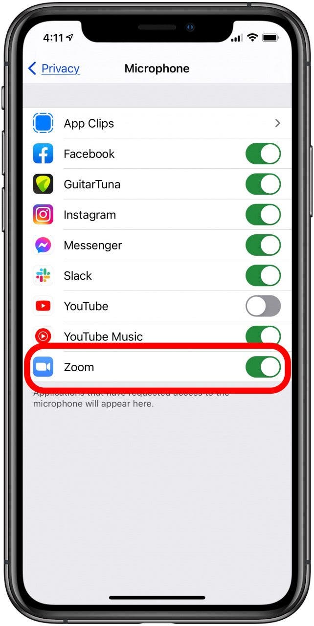 接下来,确保 Zoom 可以访问您的 iPhone 或 iPad 的麦克风。