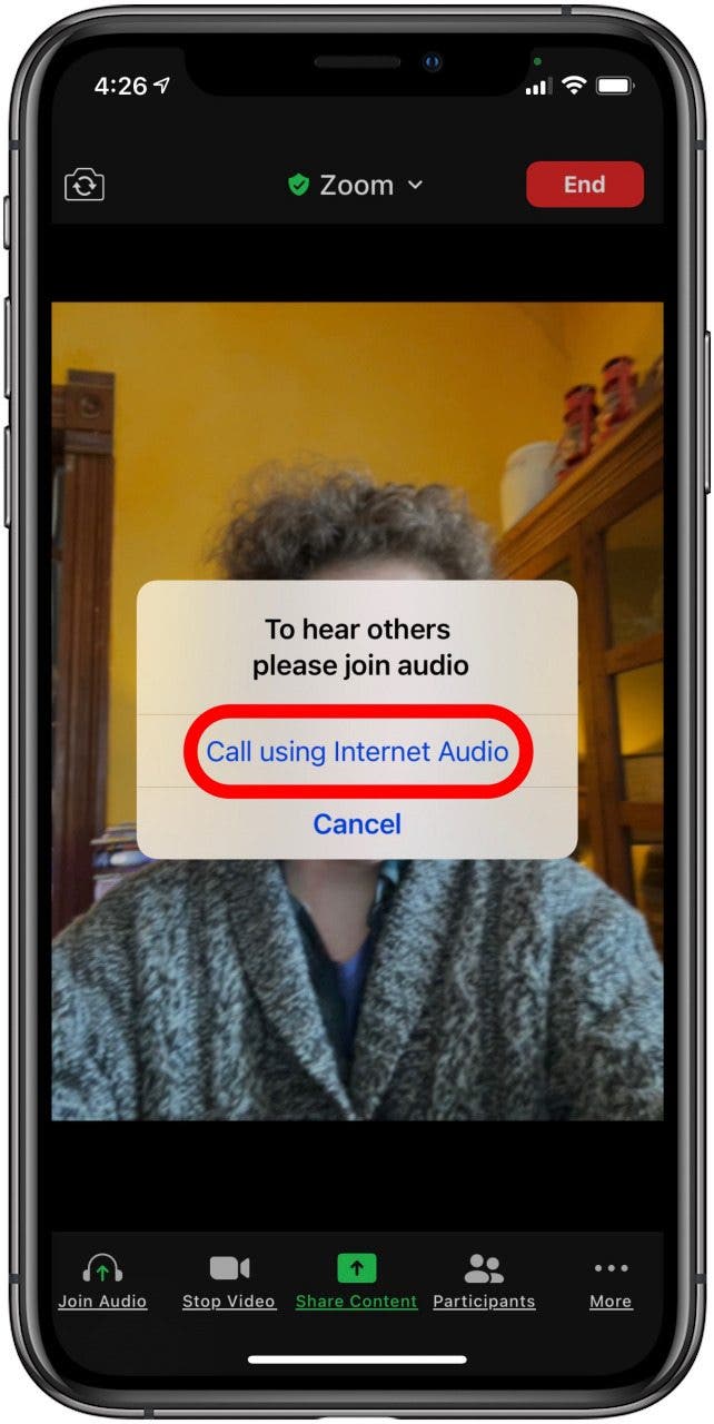 - 轻敲使用互联网音频通话在通话或会议开始时。