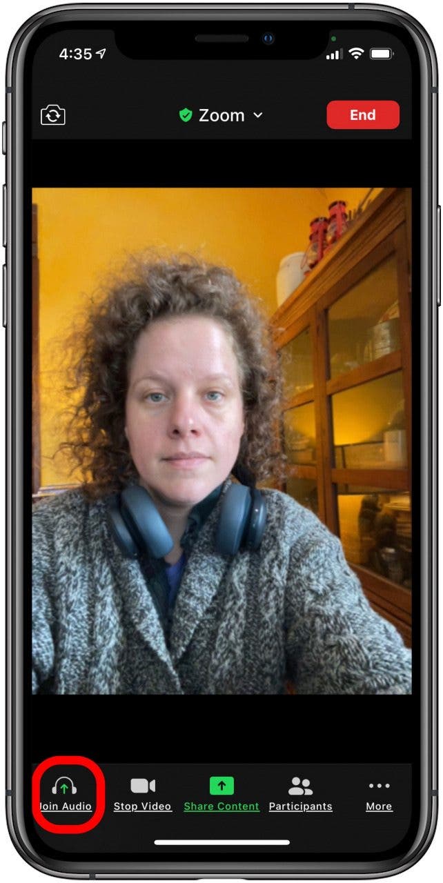 - 点击屏幕以显示屏幕底部的通话控件,然后点击加入音频。