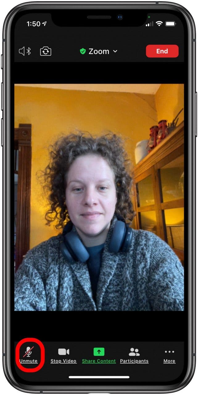 当您的 Zoom 音频无法正常工作并且您听不到通话中其他人的声音时,首先要记住的是,您可能已被静音。与在 iPhone 或 iPad 上一样,如果屏幕底部的麦克风图标显示不高兴并有一条红色斜线穿过,单击它即可取消静音。