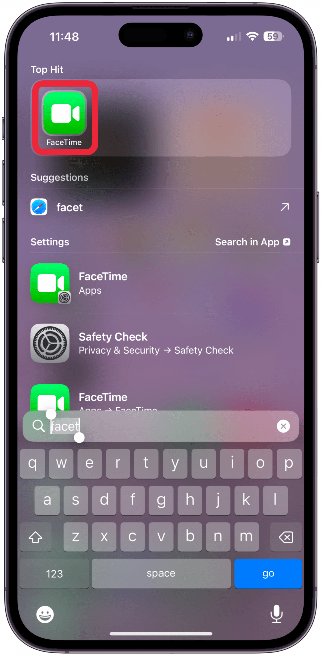 - 在 iPhone 上,点击并按住FaceTime 应用程序图标。