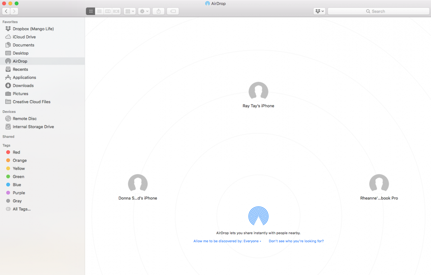 - 点击 Finder 中的 AirDrop,稍等片刻,所有可用设备都会弹出。