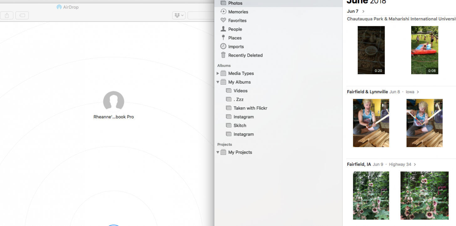 - 如果您单击 Finder 中的文档或照片,AirDrop 窗口将关闭,因此我喜欢在桌面上打开 iCloud 或任何其他网站或应用程序以及 Finder,并将它们并排放置,以便更轻松地拖放。