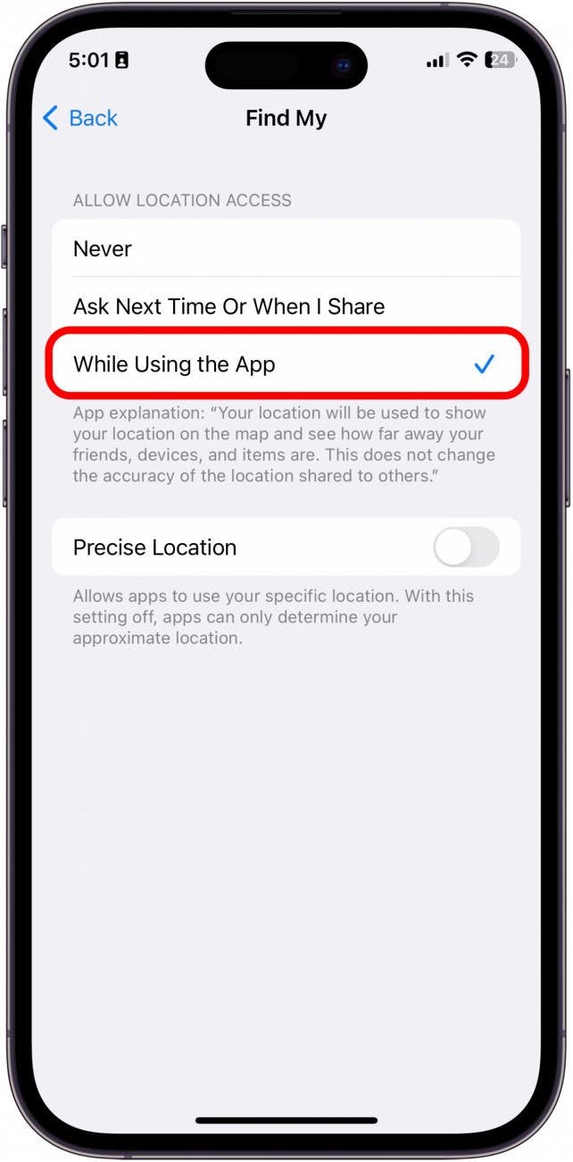 - 打开设置应用程序以确保您已启用实时位置共享。