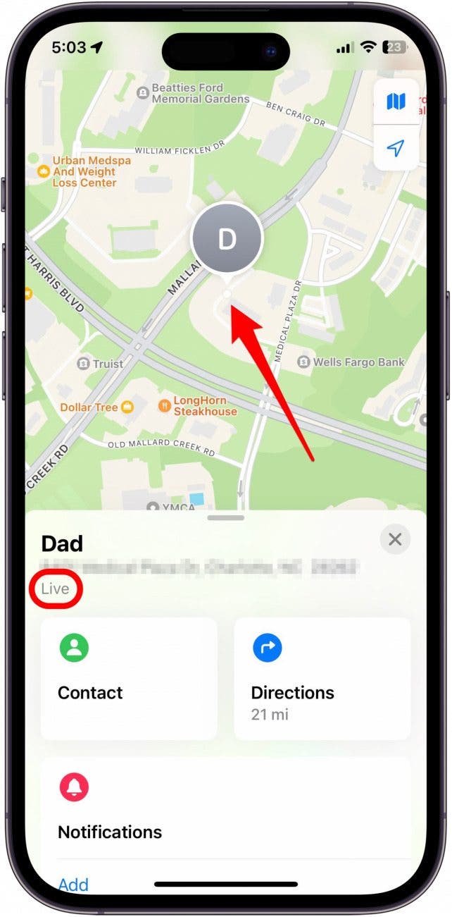 现在,只要您的连接良好并且双方正在共享位置,您就应该能够看到朋友的实时位置。如果您不再希望其他人访问您的位置,您可以。接下来,了解一下。