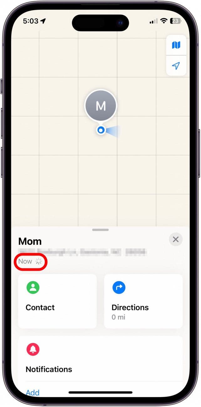 如果您看到显示“现在”一词,则表示当前未跟踪联系人的位置。它会向您显示联系人的最后已知位置,并且当他们移动时您将无法看到他们。这通常是由于 GPS 两端的连接速度缓慢造成的。通常,一旦恢复连接,它就会自动且相当快地更新。
