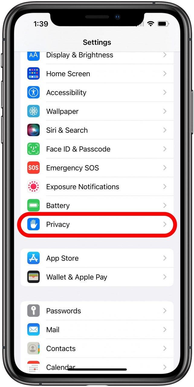 - 查找并点按隐私与安全。