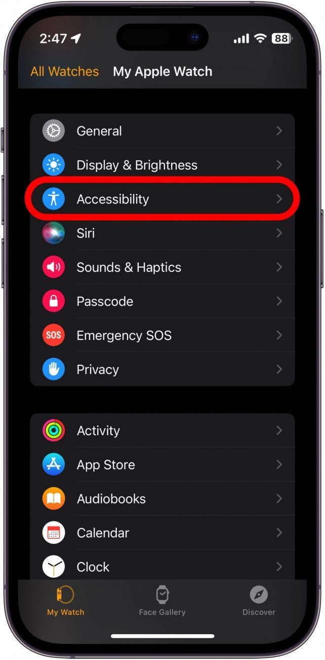 如果您仍然能够在放大的表盘上导航“设置”应用程序,或者您的 iPhone 距离很远,则仍然可以在 Apple Watch 上禁用“缩放”。要导航放大的表盘,请同时使用两根手指而不是一根手指。以下是取消缩放 Apple Watch 的方法: